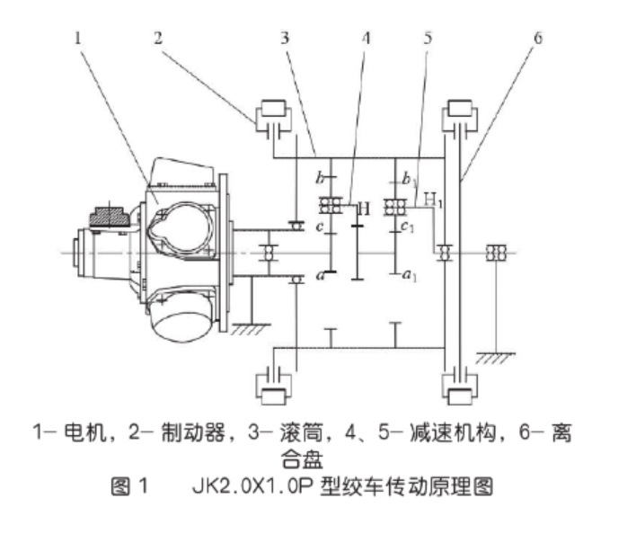 圖1 JK2.0X1.0P型絞車傳動(dòng)原理圖